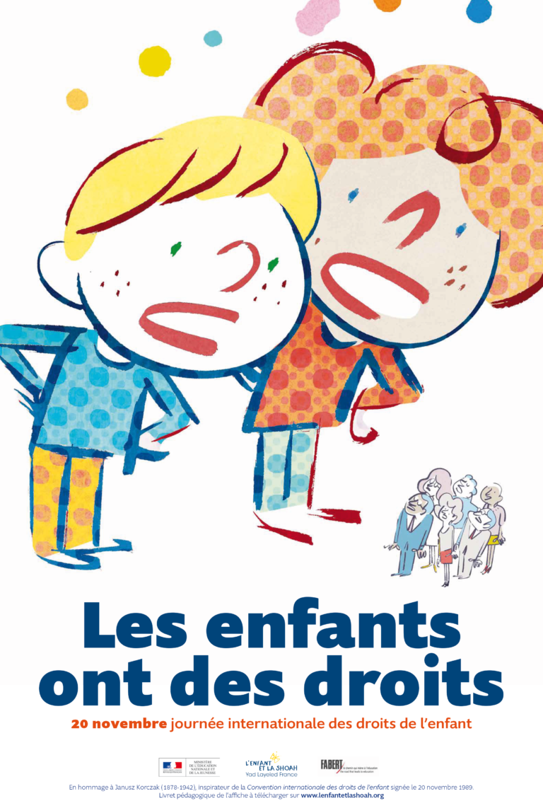 L’affiche illustrée par Gilles Rapaport et le livret rendent hommage au pédagogue et médecin juif polonais Janusz Korczak (1878-1942), inspirateur de cette Convention.